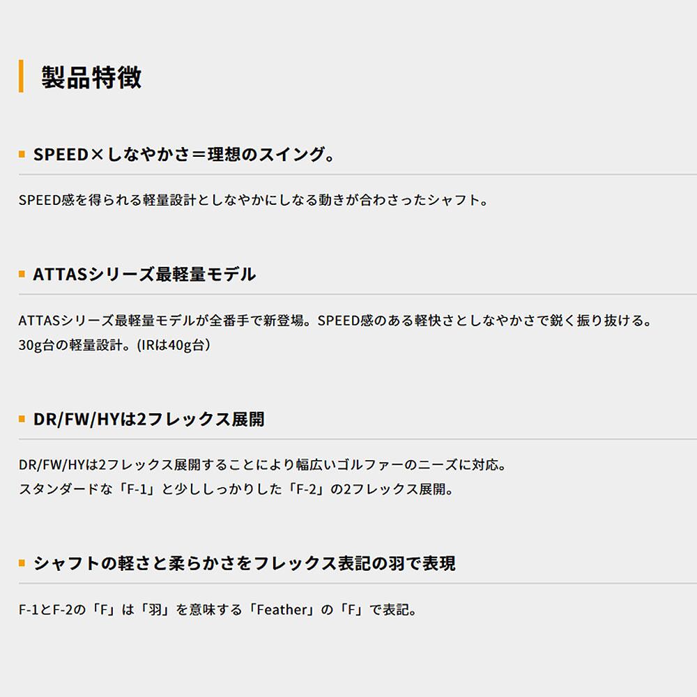 ATTASシリーズ最軽量モデルが全番手で新登場。SPEED感のある軽快さとしなやかさで鋭く振り抜ける。