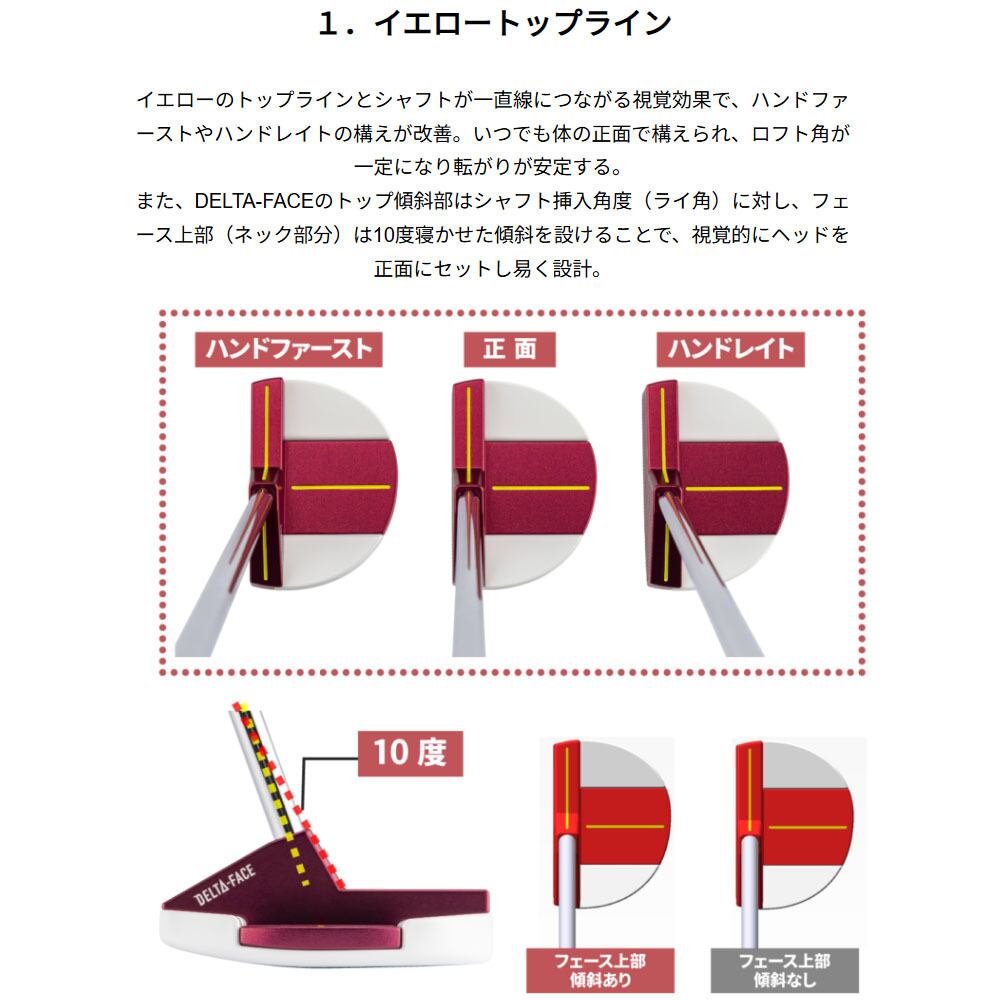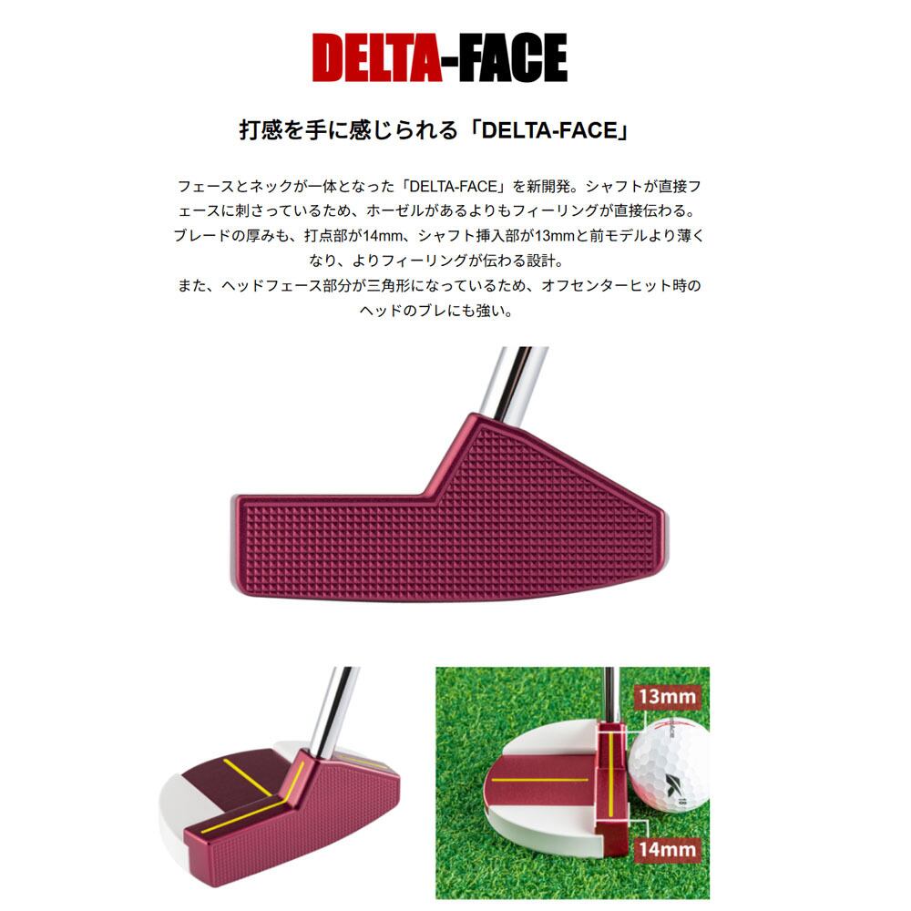 フェースとネックが一体となった「DELTA-FACE」を新開発。シャフトが直接フェースに刺さっているため、ホーゼルがあるよりもフィーリングが直接伝わる。ブレードの厚みも、打点部が14mm、シャフト挿入部が13mmと前モデルより薄くなり、よりフィーリングが伝わる設計。