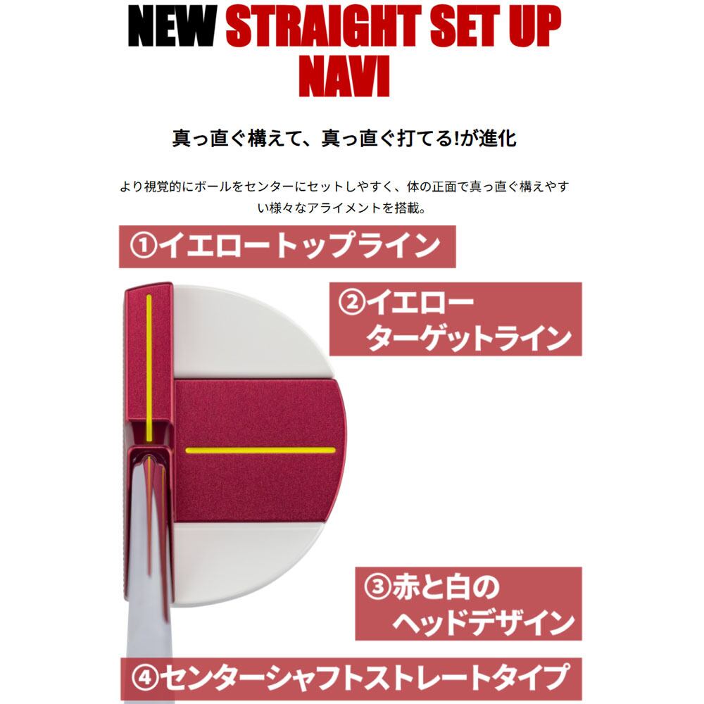 より視覚的にボールをセンターにセットしやすく、体の正面で真っ直ぐ構えやすい様々なアライメントを搭載。